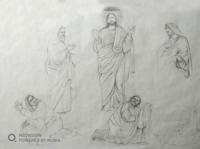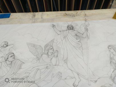 Realizzazione n° 2 Vetrate raffiguranti l'Ascensione e la Trasfigurazione. Studio progettuale grafico per la realizzazione delle vetrate